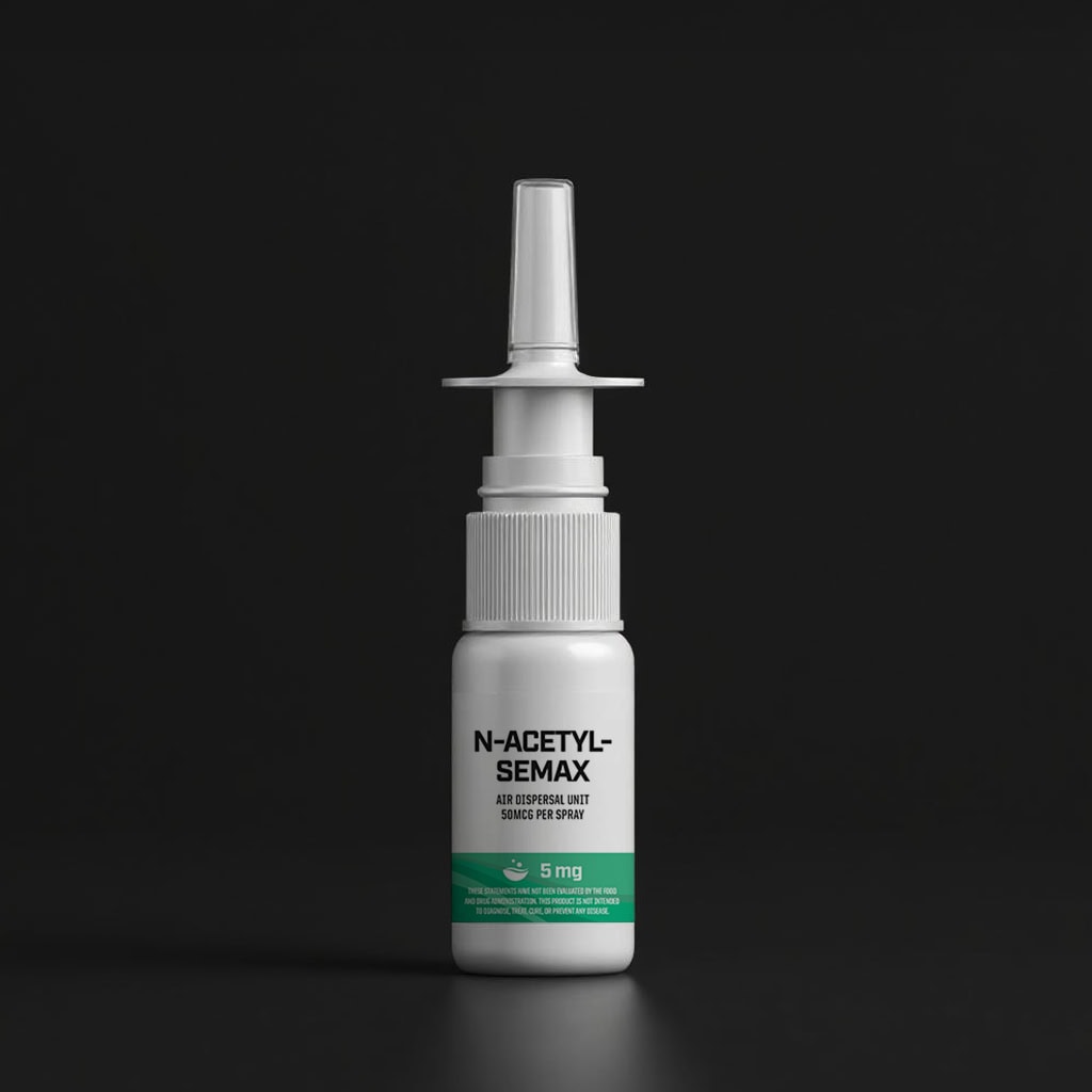 N-Acetyl-Semax Spray is a research peptide derived from adrenocorticotropic hormone (ACTH 4-10), acetylated for enhanced structural stability. It is used in studies of BDNF expression, dopaminergic signaling, and cognitive modulation. This intranasal format facilitates examination of bioavailability and peptide-receptor interaction in neurological models.